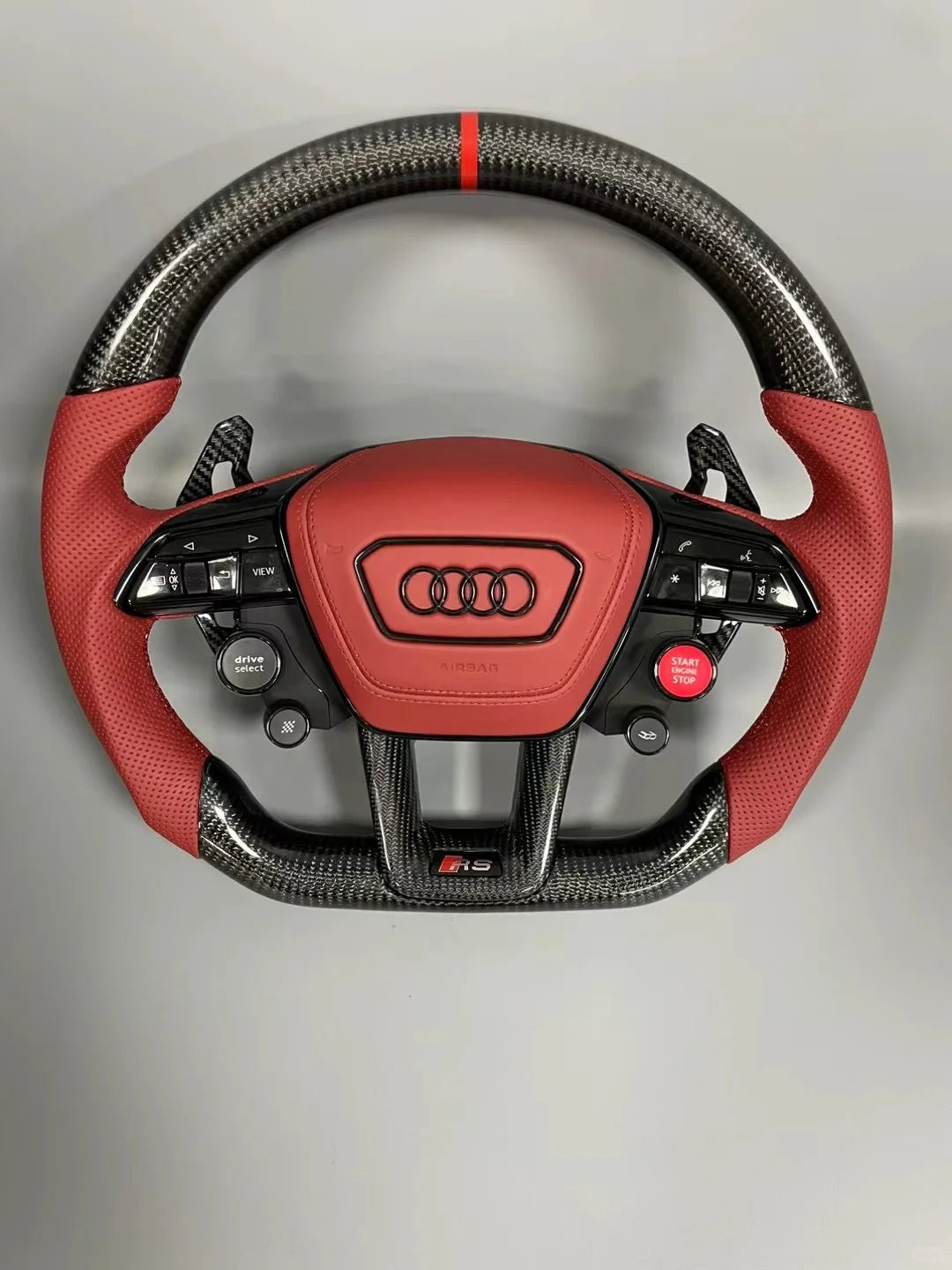 Audi carbon fiber steering wheel with red leather and 4 knobs