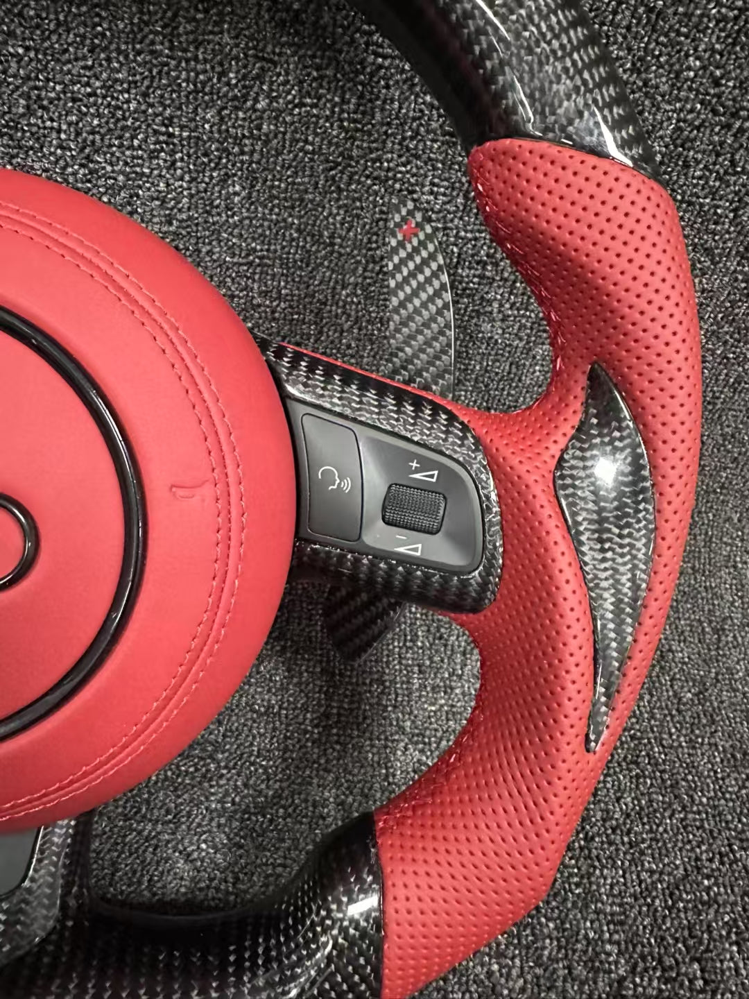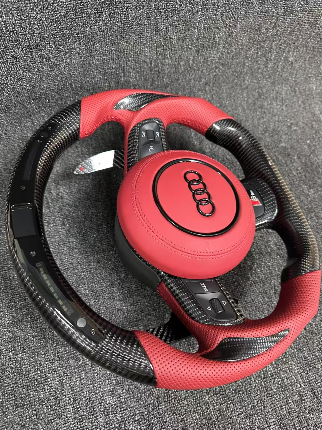 Custom Audi Steering Wheel – Red Leather + Carbon Fiber + Carbon Paddles + LED Display
