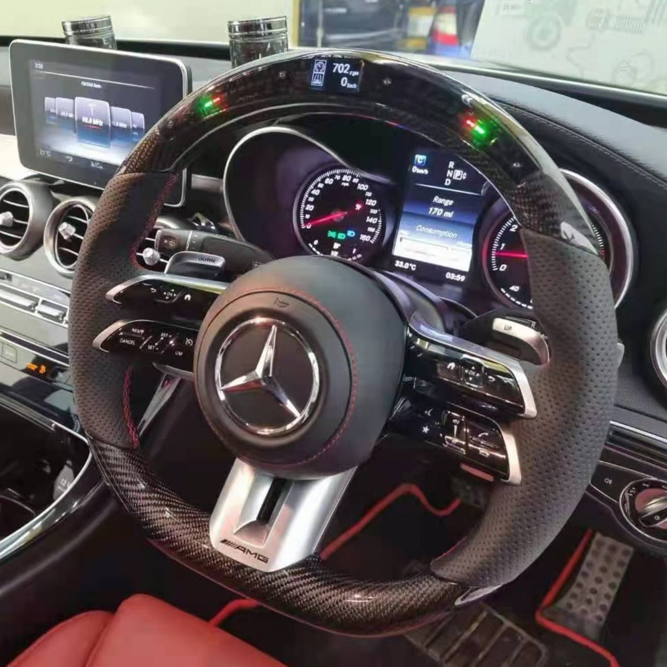 Custom carbon fiber steering wheel with LED and OLED LCD knob for Mercedes-Benz