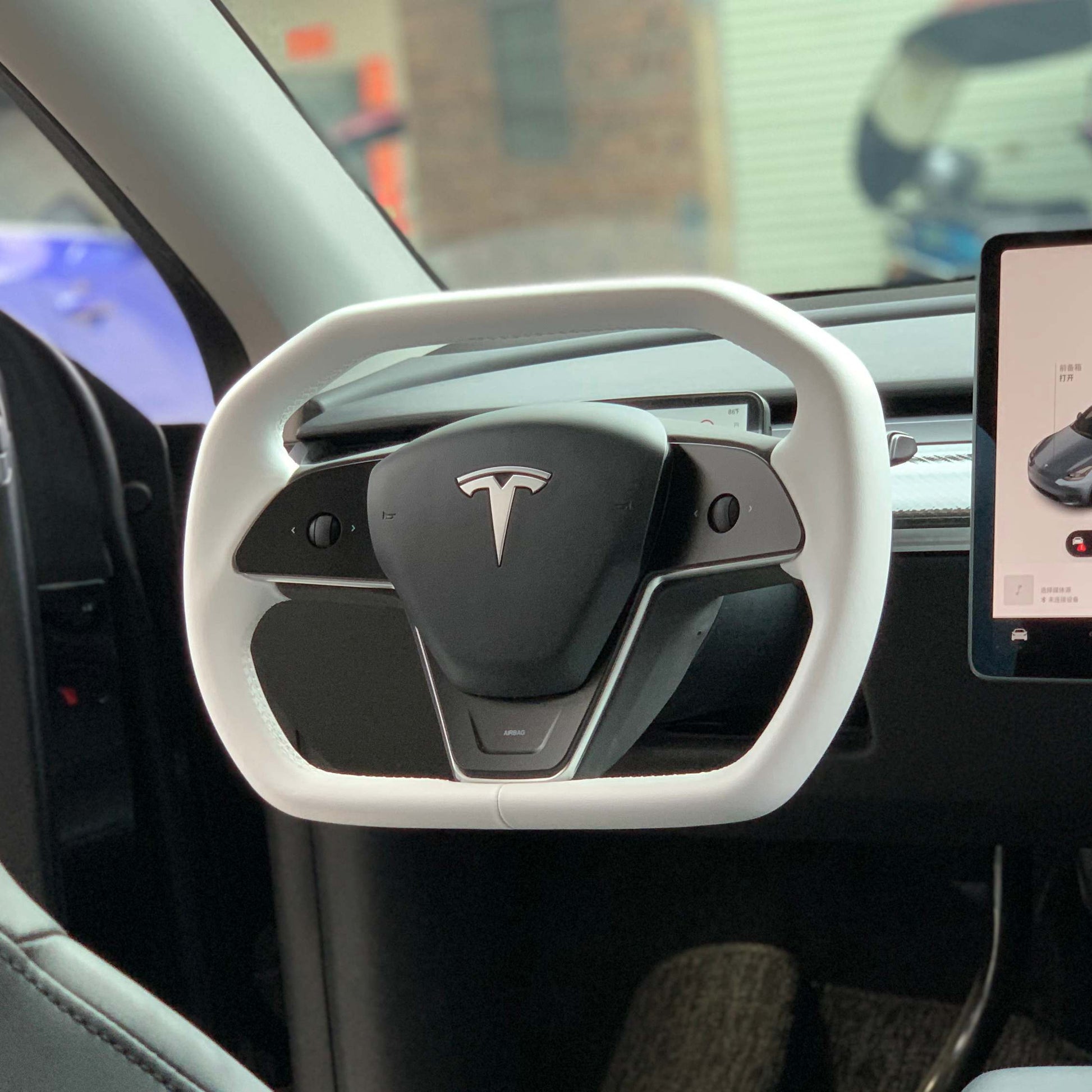 Cybertruck style Nappa leather steering wheel for Tesla model 3/Y/S/X