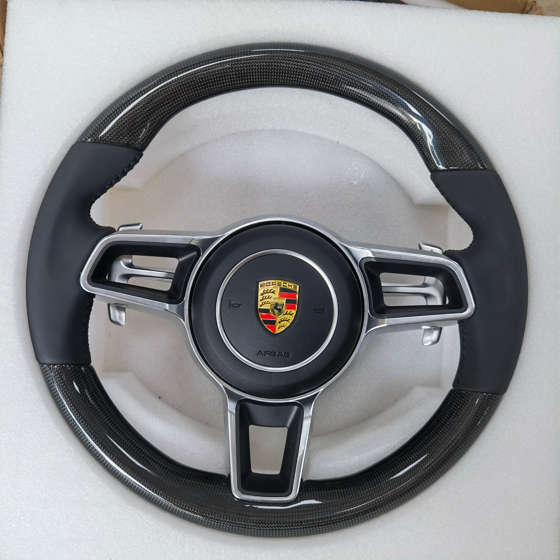 D-Shaped Carbon Fiber + Nappa Leather Steering Wheel German Tricolor Stitching for Porsche 911/718