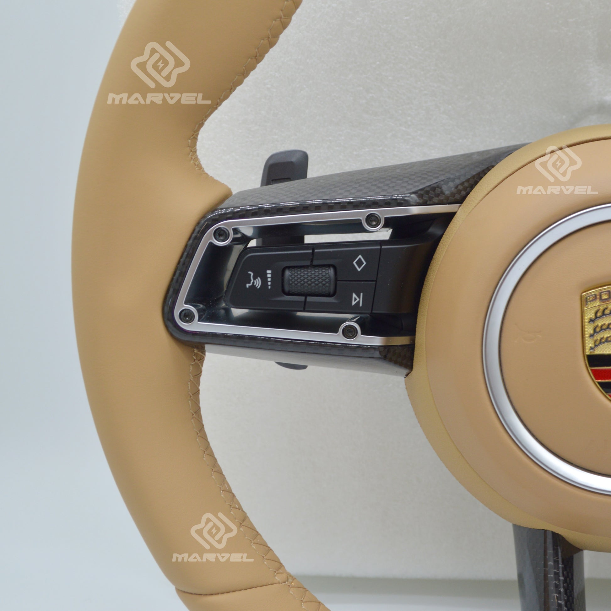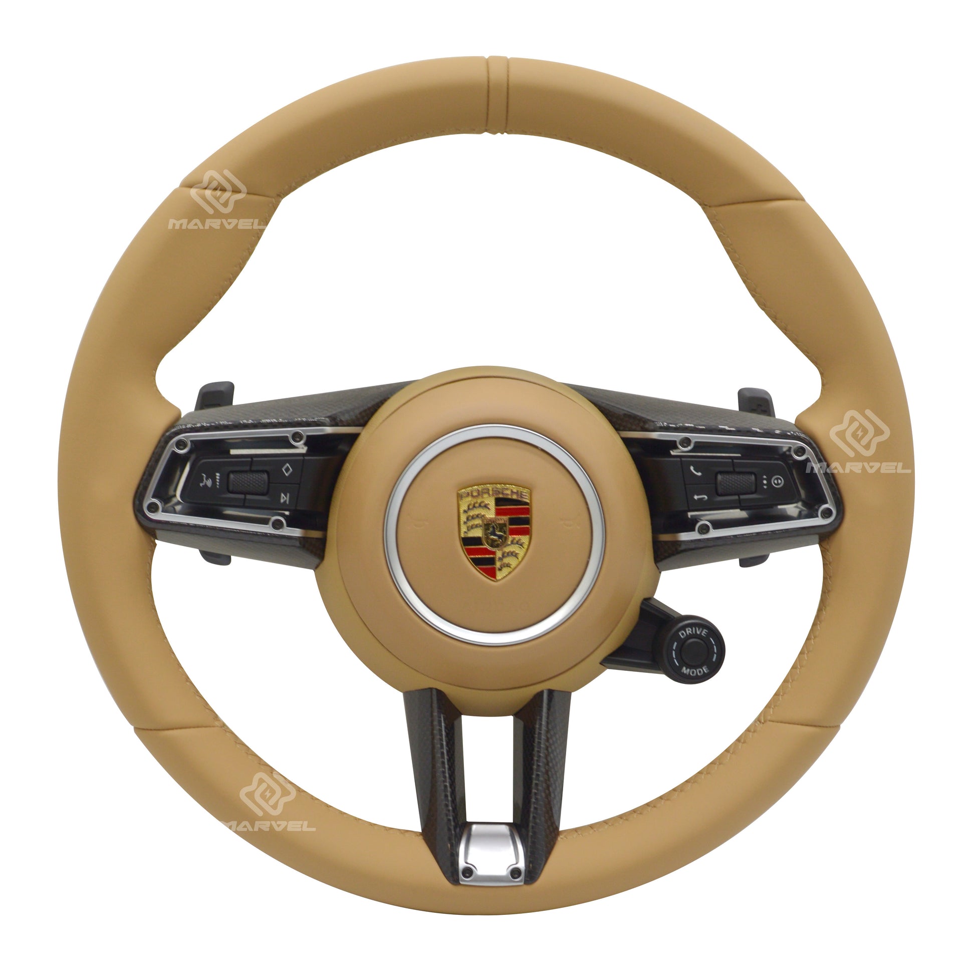 Custom Leather Steering Wheel Fits for Porsche 718,991,992,911,911.2,GT2,GT2RS,GT3,GT3RS,GT4Cayenne,Macan, Boxster,Cayman,Taycan,Panamera, Carrera,etc