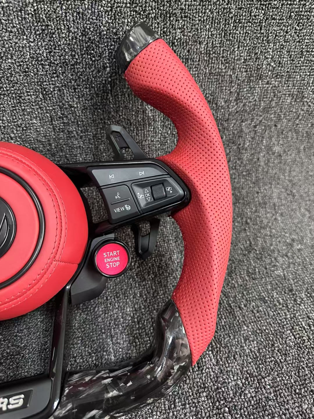 Volkswagen aircraft steering wheel, Volkswagen carbon fiber steering wheel, forged textured steering wheel assembly, Volkswagen R8 two key steering wheel, Volkswagen steering wheel start button, driving mode, valve exhaust. Multi functional buttons, shift paddles, Lamborghini paddles, Volkswagen's old model upgraded to a new model with multiple functions, upgrading from low-end to high-end.