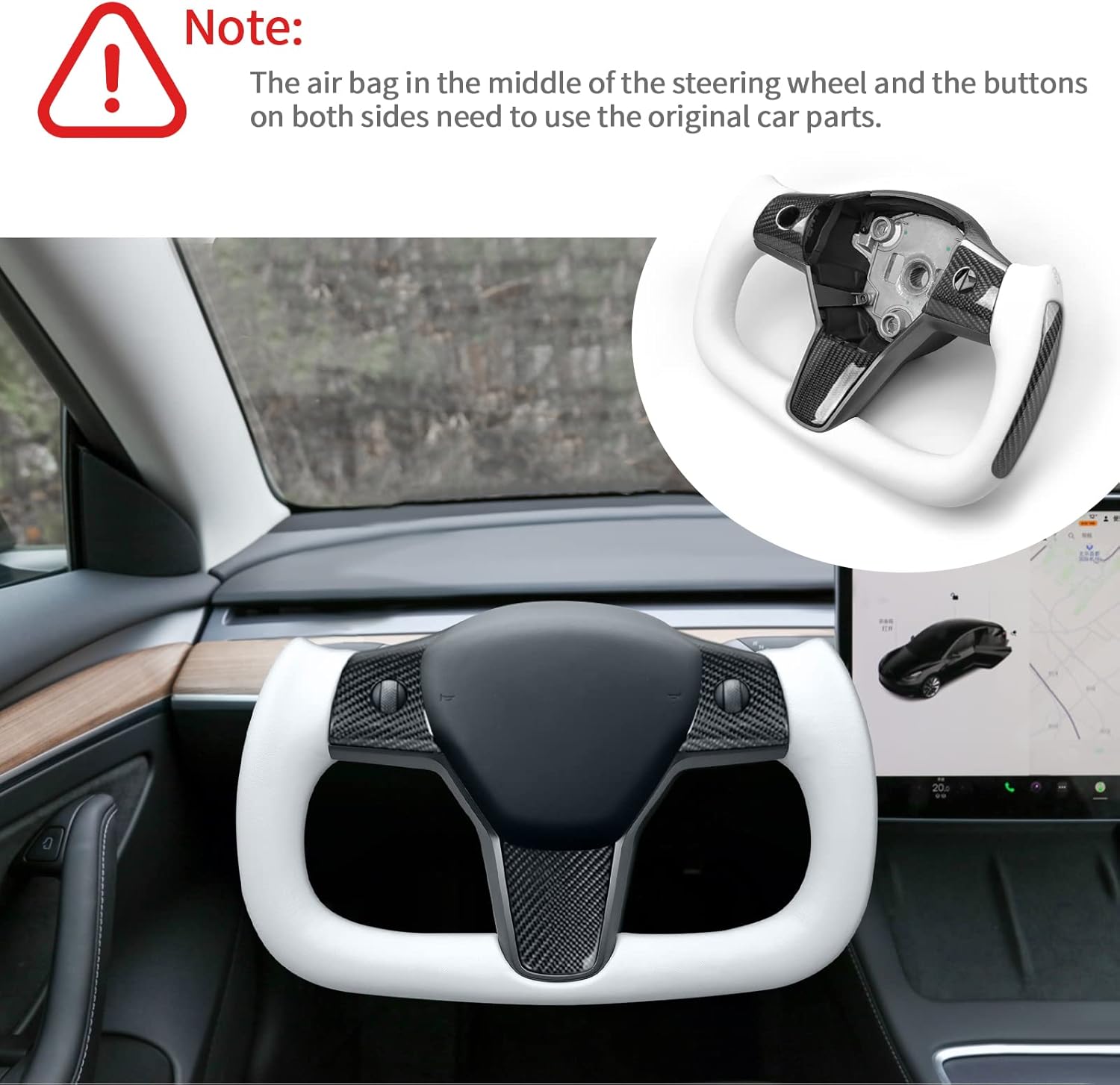 Yoke steering wheel with bright carbon or matte carbon trim with side carbon and heating for Tesla Model 3/Y
